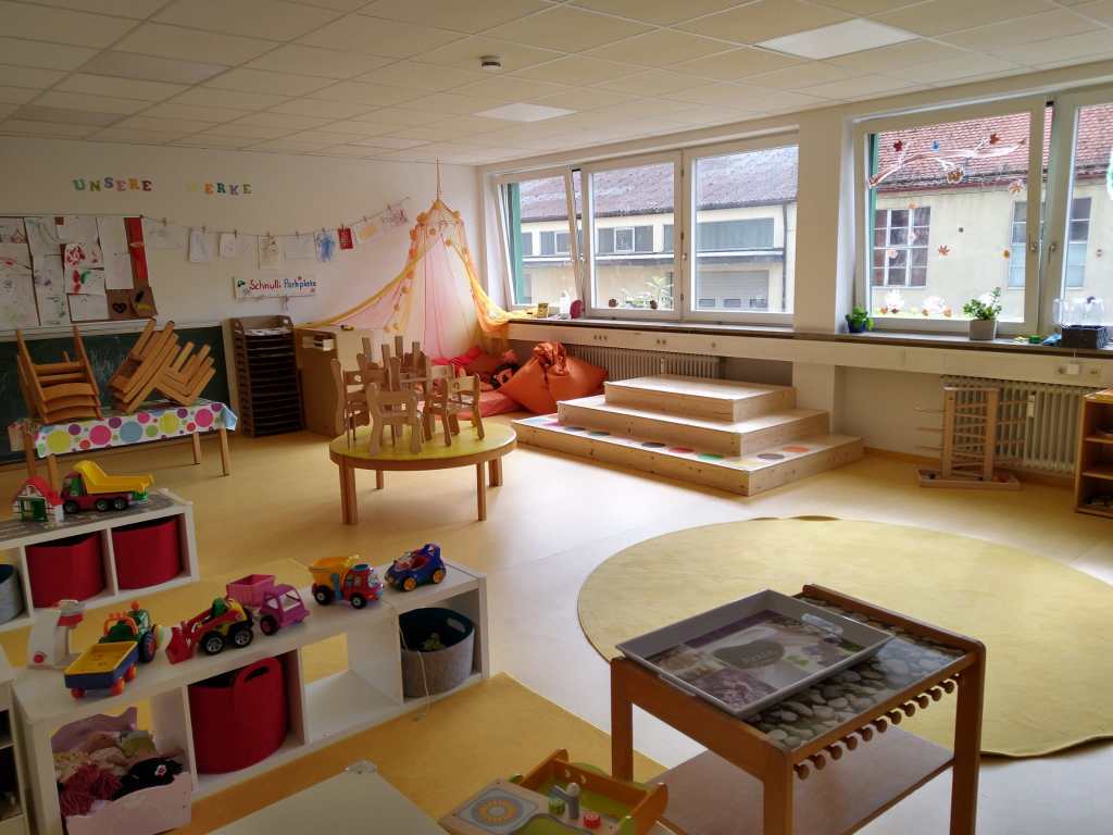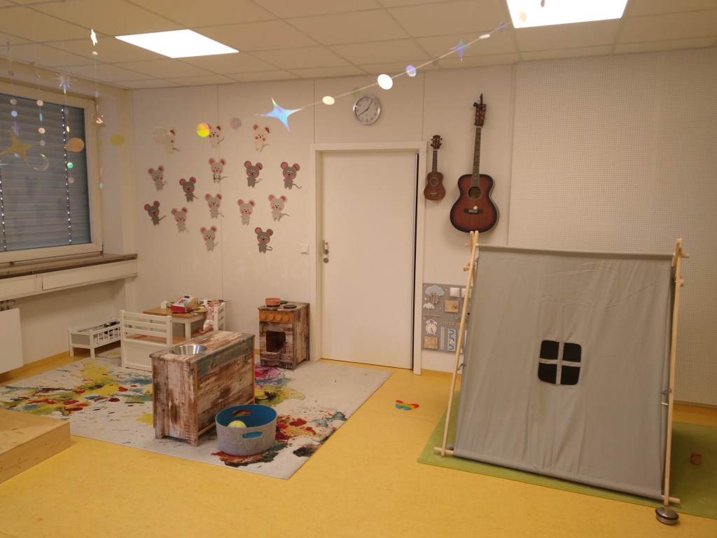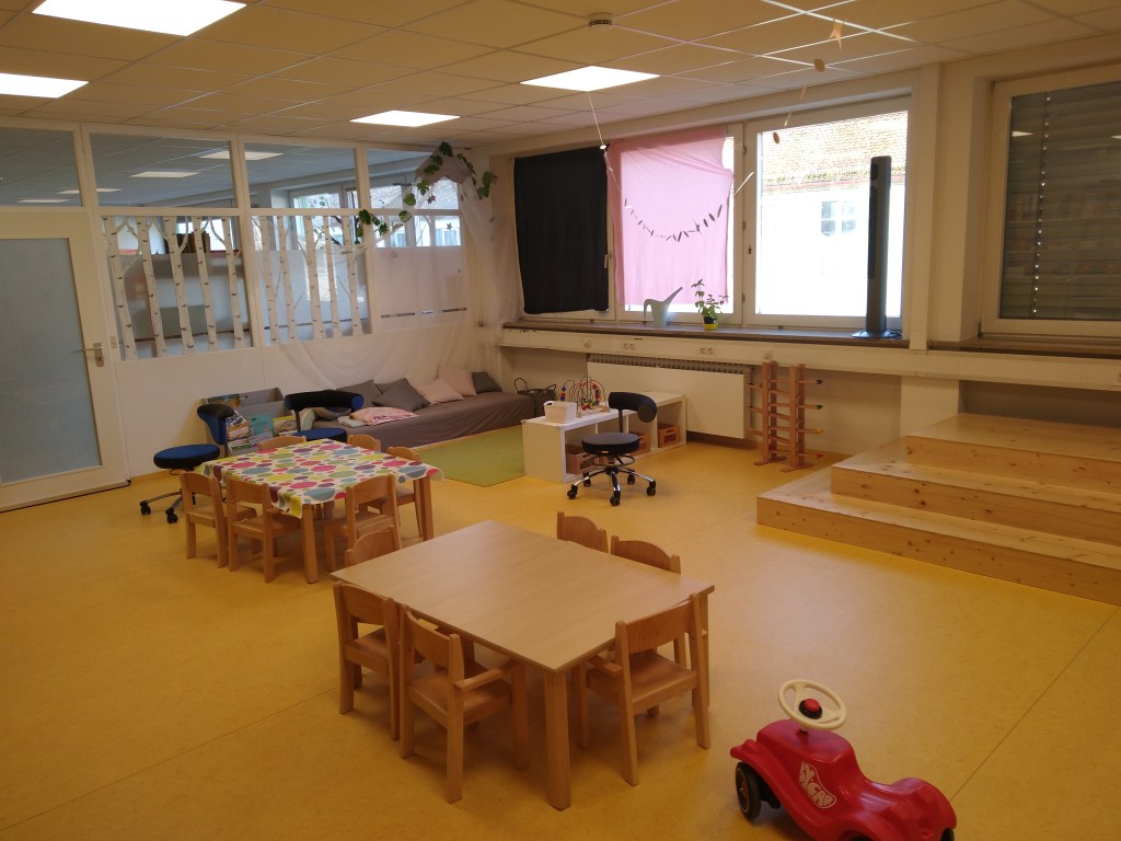Bis zur Fertigstellung unseres Neubaus am alten Festplatz in Bechhofen, sind wir in einem alten Bürogebäude in Bechhofen untergebracht. Wir haben zwei Krippengruppen, eine Mischgruppe und eine Regelgruppe, dazu 2 Bewegungsräume, zahlreiche Nebenräume, unsere Garderoben und einen kleinen Garten.