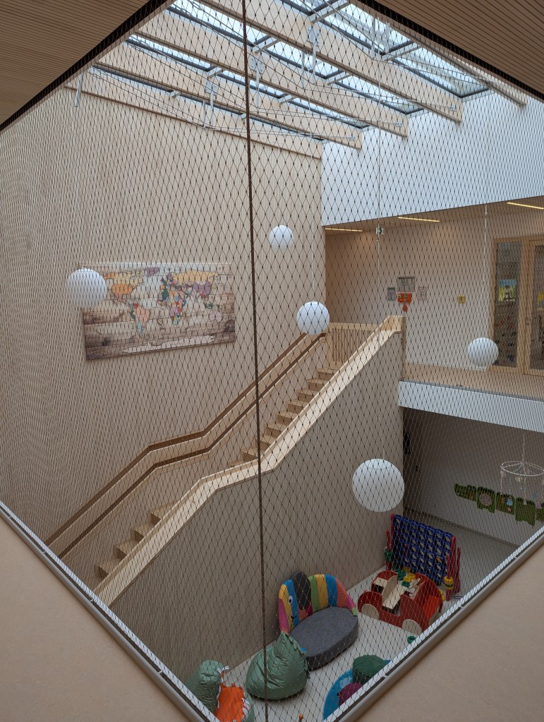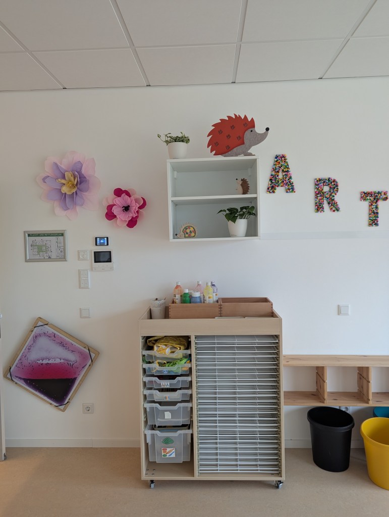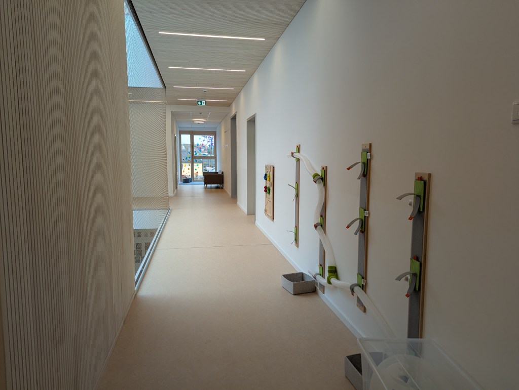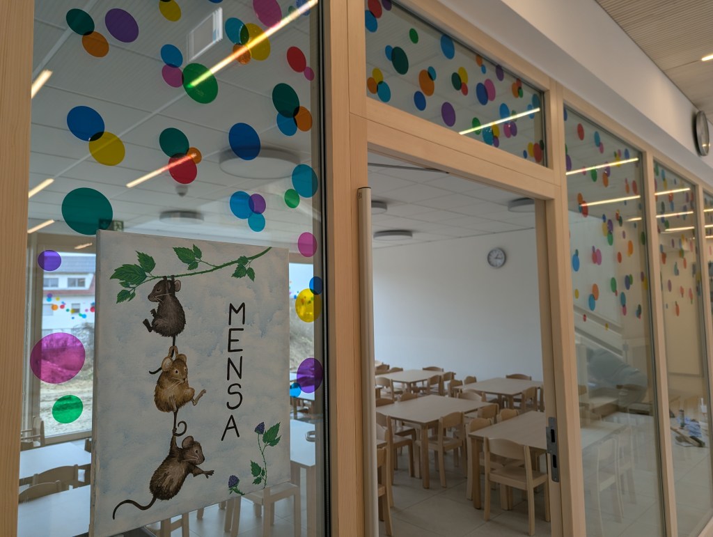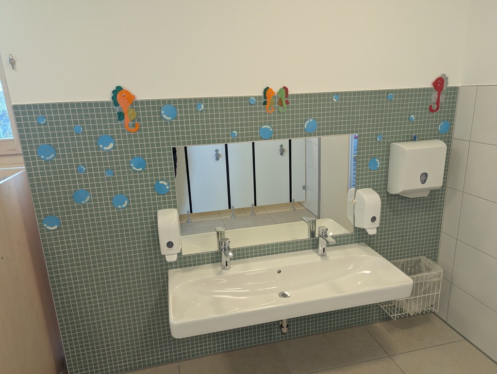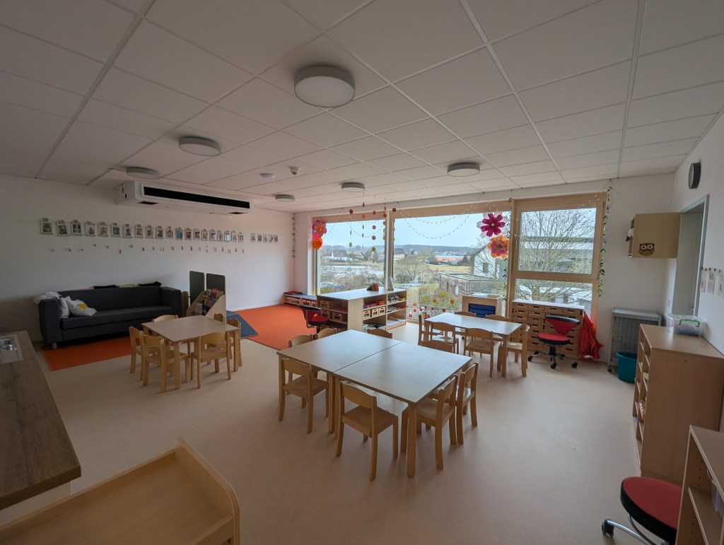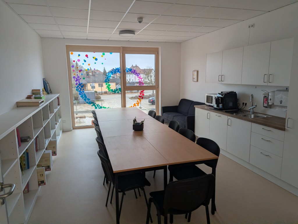 Seit dem 23. Februar 2026 sind wir in unserem Neubau in der Ziegeleistraße in Bechhofen. Wir haben zwei Krippengruppen, eine Mischgruppe und zwei Regelgruppen, dazu einen Bewegungsraum, zahlreiche Nebenräume, unsere Garderoben und einen großen Garten.